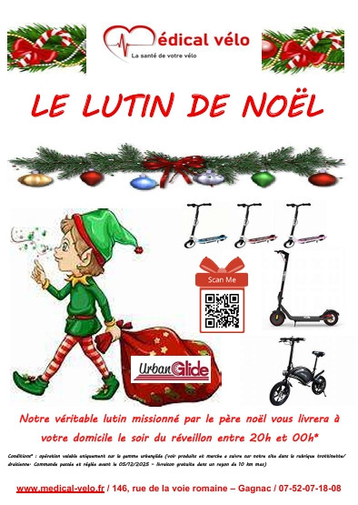 la livraison de votre trottinette ou draisienne le soir du réveillon entre 20h et minuit par notre véritable lutin missionné par le père noël!